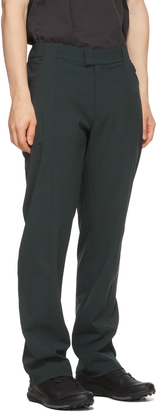 Straight-leg water-resistant stretch nylon-blend ripstop trousers in grey. Mid-rise. Three-pocket styling. Belt loops at partially elasticized waistband. Central seams at front. Rubberized pull-loop in black featuring embossed logo at back pocket. Zip-fly. Supplier color: Field grey 73% nylon, 15% polyester, 12% polyurethane. Brand: Affix
