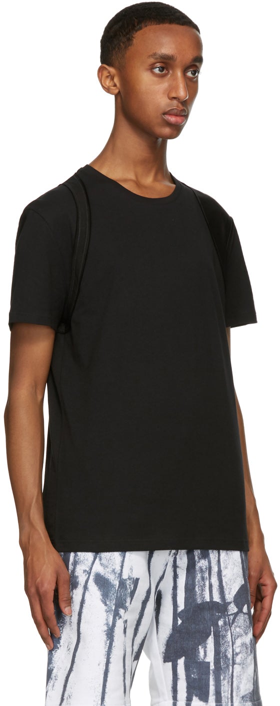 Short sleeve mercerized cotton jersey T-shirt in black. Tonal signature trim with raw edge at shoulders. Rib knit crewneck collar. Supplier color: Black 100% cotton. Brand: Alexander McQueen