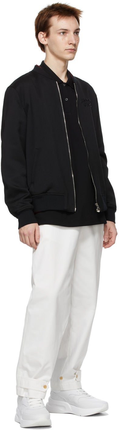 Alexander McQueen Black Wool Embroidered Logo Bomber Jacket