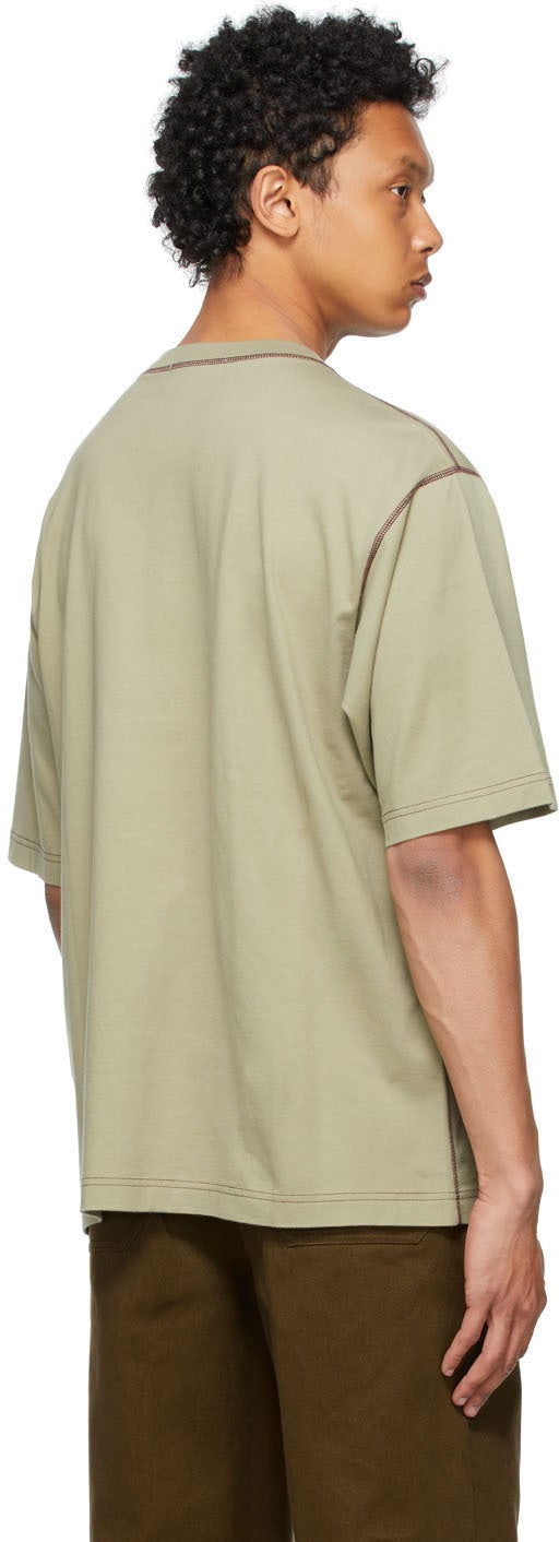 Short sleeve paneled cotton jersey T-shirt in beige. Rib knit crewneck collar. Logo embroidered in burgundy at chest. Overlock stitching in burgundy throughout. Supplier color: Beige/Vineyard Body: 100% cotton. Trim 1: 100% cotton. Trim 2: 100% polyester. Brand: AMBUSH