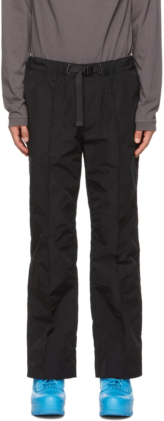 Straight-leg nylon-blend taffeta trousers in black. High-rise. Four-pocket styling. Belt loops and integrated webbing belt with cinch fastening at waistband. Pleats at front. Zip-fly. Tonal and silver-tone hardware. Supplier color: Black 59% polyamide, 41% polyester. Brand: AMBUSH