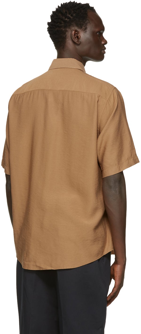 Short sleeve viscose-blend twill shirt in beige. Spread collar. Patch pocket at chest. Shirttail hem. Supplier color: Beige 89% viscose, 11% polyamide. Brand: AMI Alexandre Mattiussi