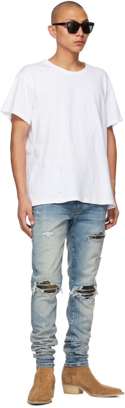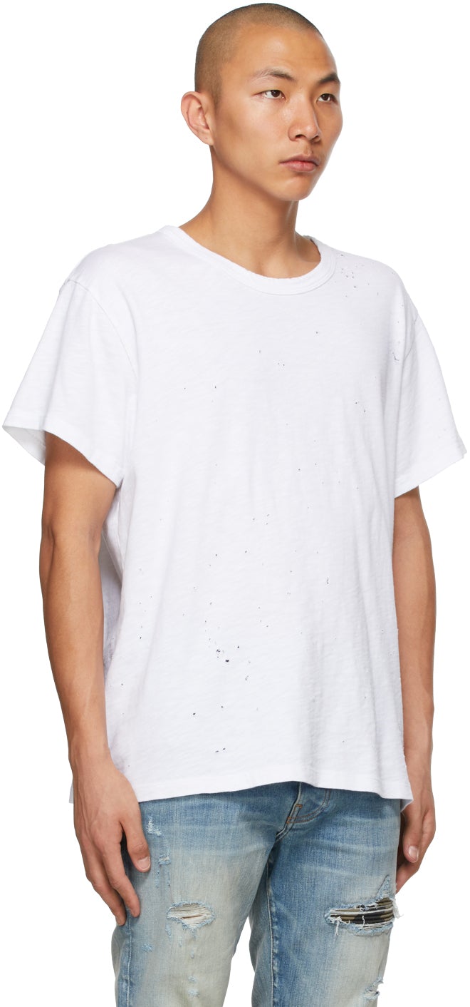Short sleeve supima cotton jersey T-shirt in white featuring perforated detailing throughout. Rib knit crewneck collar. Supplier color: White 100% supima cotton. Brand: AMIRI