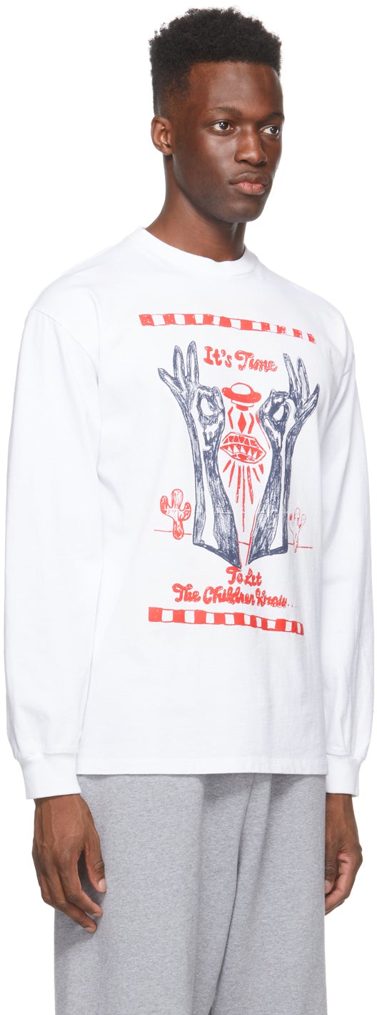 Aries White 'It's Time' Dokkoi Long Sleeve T-Shirt