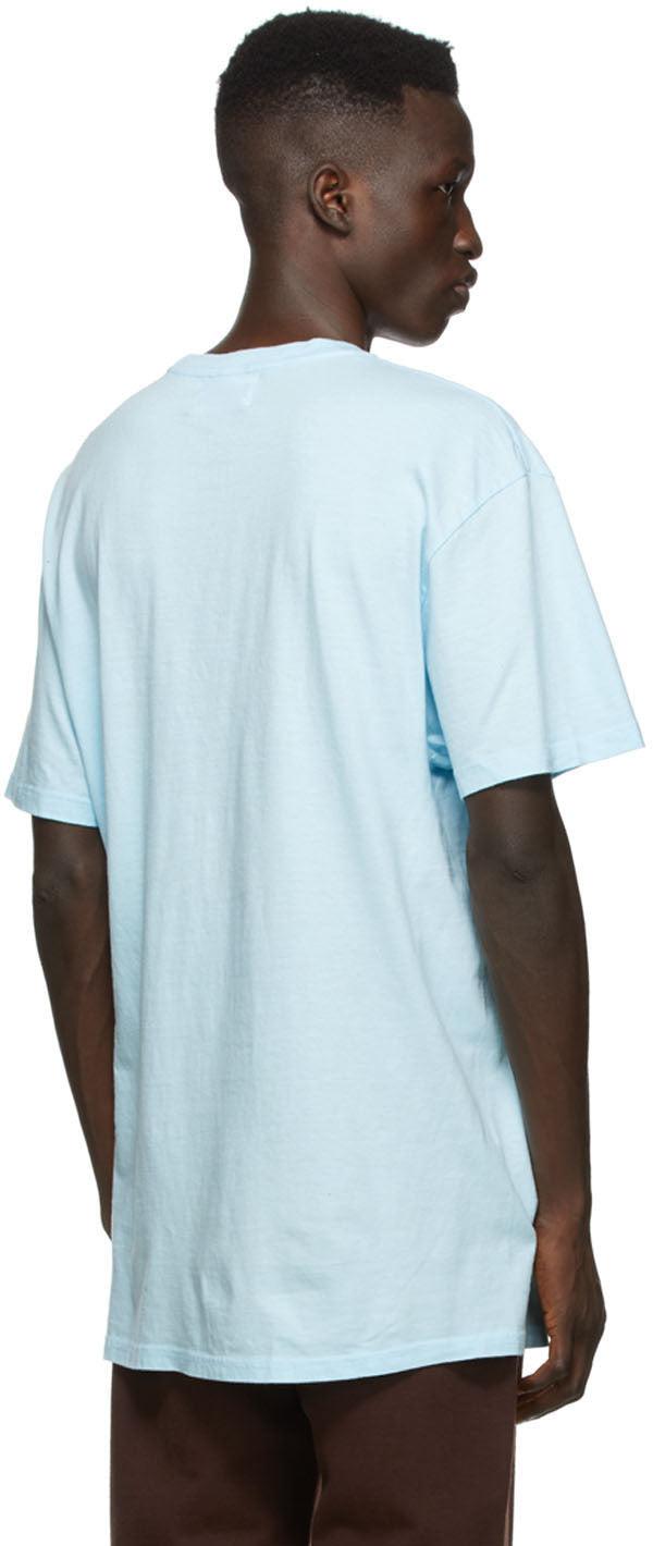Short sleeve cotton jersey T-shirt in blue. Rib knit crewneck collar. Multicolor logo graphic printed at front. Supplier color: Glacier 100% cotton. Brand: Awake NY