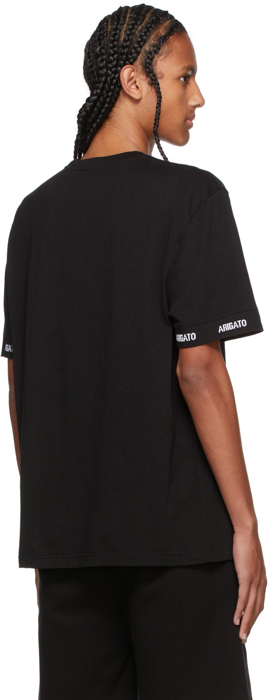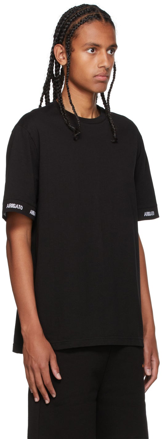 Short sleeve organic cotton jersey T-shirt in black. Rib knit crewneck collar. Jacquard knit logo in white at rib knit cuffs. Supplier color: Black 100% organic cotton. Brand: Axel Arigato