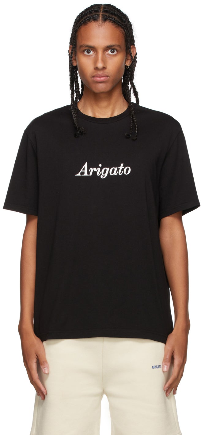 Short sleeve organic cotton T-shirt in black. Rib knit crewneck collar. Logo printed in white at chest. Supplier color: Black 100% organic cotton. Brand: Axel Arigato