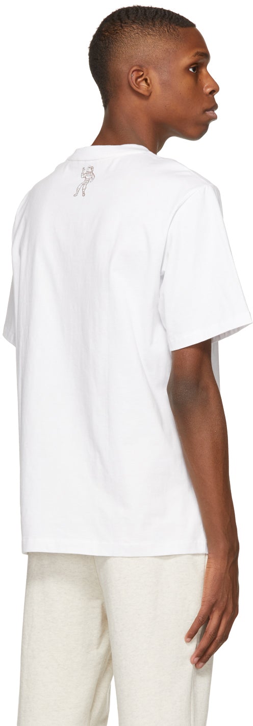 Short sleeve cotton jersey T-shirt in white. Rib knit crewneck collar. Logo printed in multicolor at front. Textile logo flag at cuff. Logo printed in brown at back. Supplier color: White 100% cotton. Brand: Billionaire Boys Club