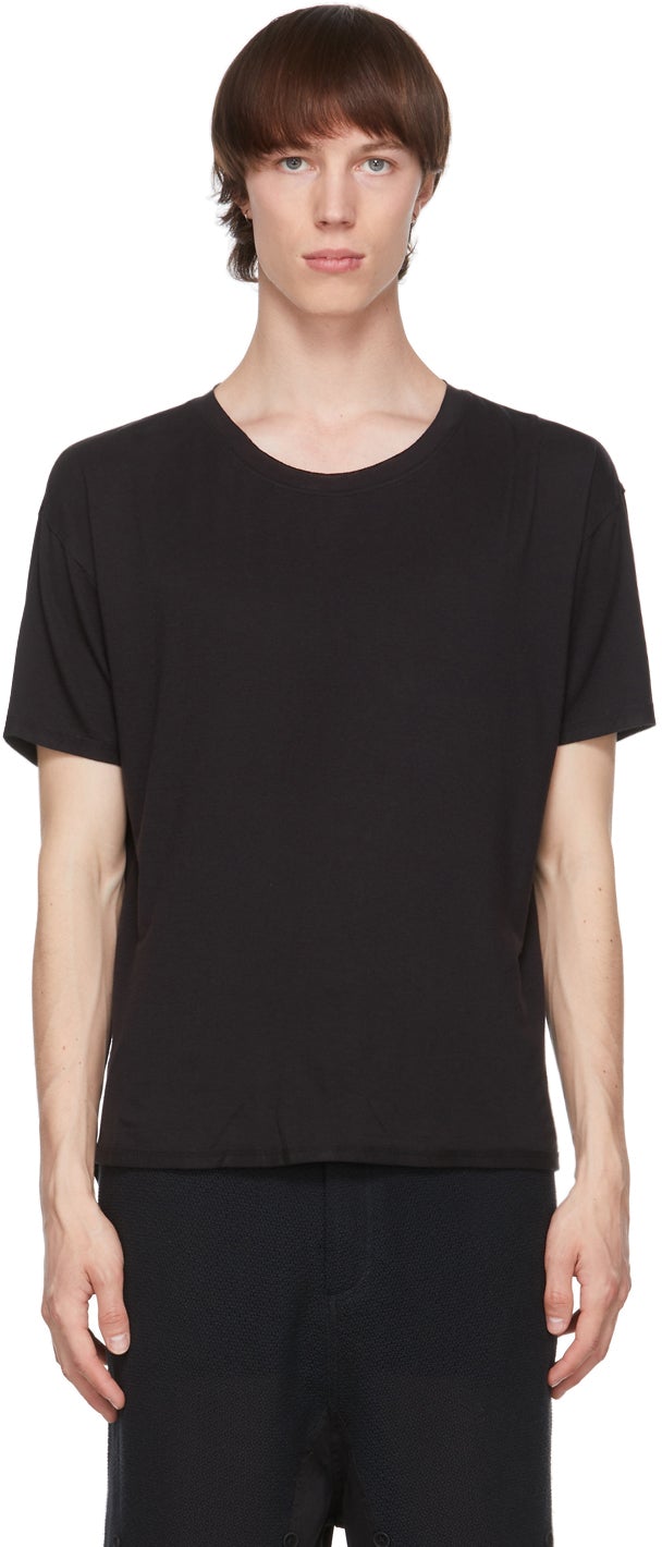 Short sleeve cotton jersey T-shirt in black. Raw edges throughout. Crewneck collar. Supplier color: Black 100% cotton. Brand: Blackmerle