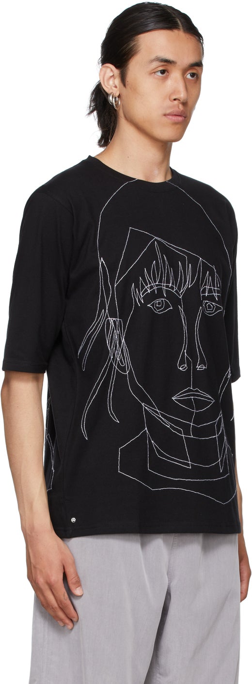 Short sleeve cotton jersey T-shirt in black. Rib knit crewneck collar. Graphic embroidered in white at front and back. Supplier color: Black 100% cotton. Brand: Bless