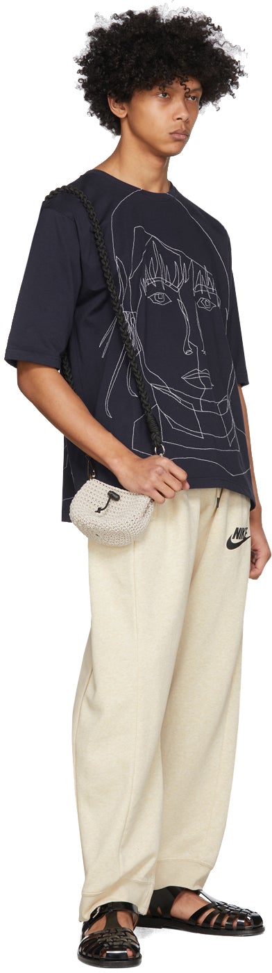 Short sleeve cotton jersey t-shirt in navy. Rib knit crewneck collar. Graphic stitched in white at front and back. Supplier color: Dark blue 100% cotton. Brand: Bless