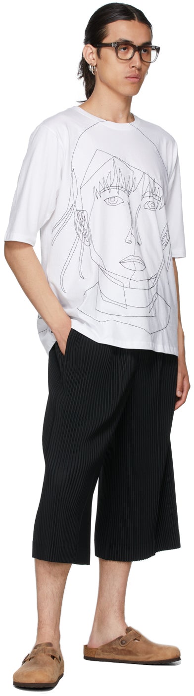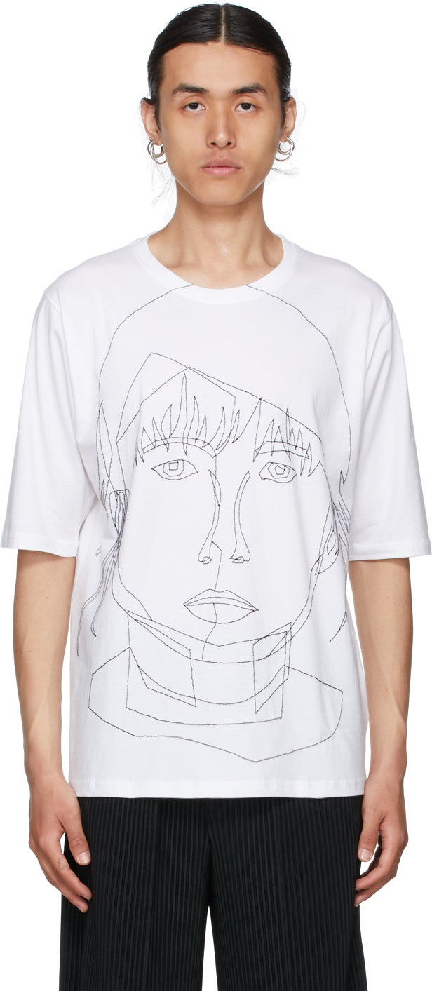 Short sleeve cotton jersey T-shirt in white. Rib knit crewneck collar. Graphic embroidered in black at front and back. Supplier color: White/Black 100% cotton. Brand: Bless