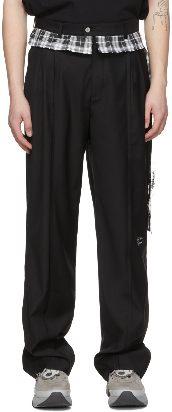C2H4 Black 'My Own Private Planet' Raw Edge Tailored Trousers