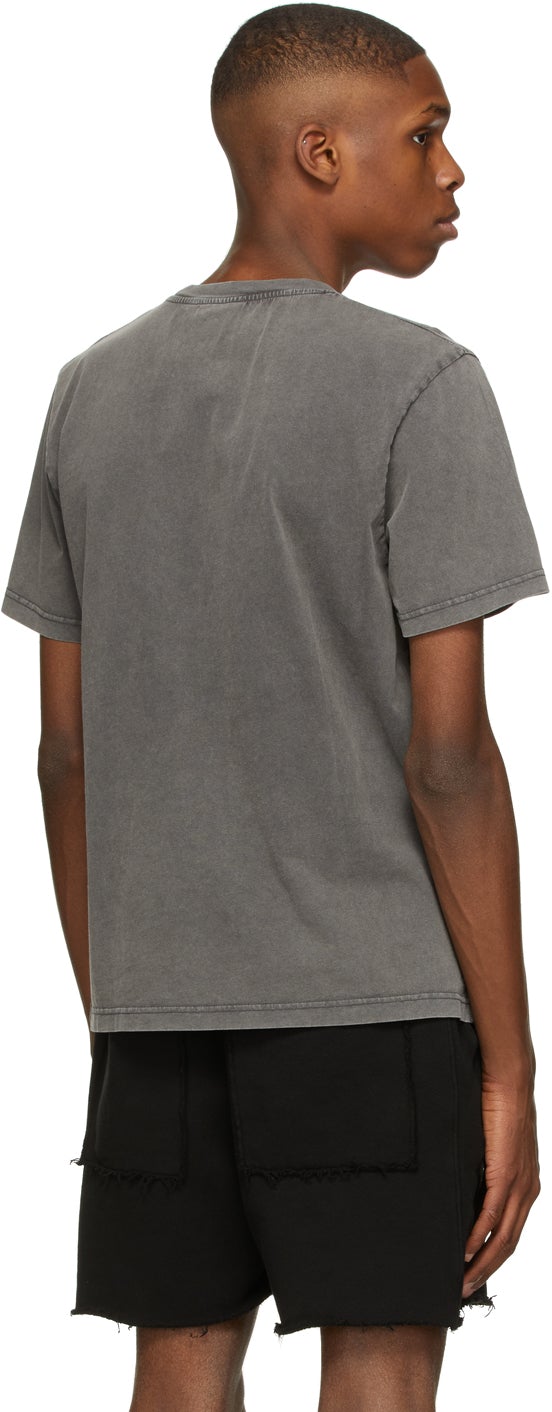Short sleeve organic cotton jersey T-shirt in grey. Fading throughout. Rib knit crewneck collar. Graphic embroidered in multicolor at chest. Supplier color: Washed black 100% organic cotton. Brand: Carne Bollente