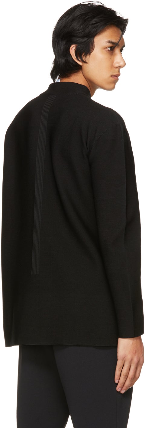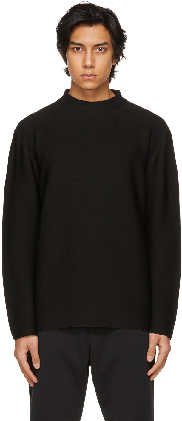 Long sleeve knit cupro-blend T-shirt in black. Mock neck collar. Rib knit detailing at back. Tennis-tail hem. Supplier color: Black 45% cupro, 29% polyester, 26% recycled polyester. Brand: CFCL