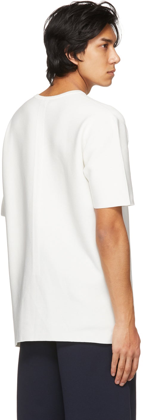 Half sleeve knit cupro-blend T-shirt in white. Rib knit crewneck collar. Rib knit detailing at back. Tennis-tail hem. Supplier color: White 45% cupro, 29% polyester, 26% recycled polyester. Brand: CFCL