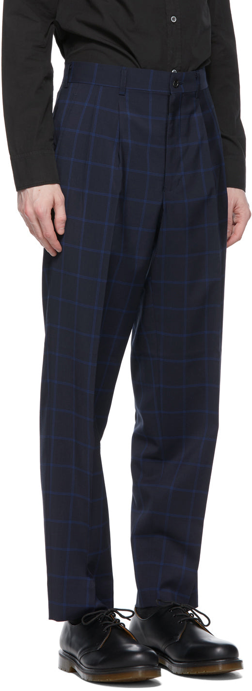 Comme des Garçons Homme Deux Navy Wool Windowpane Trousers