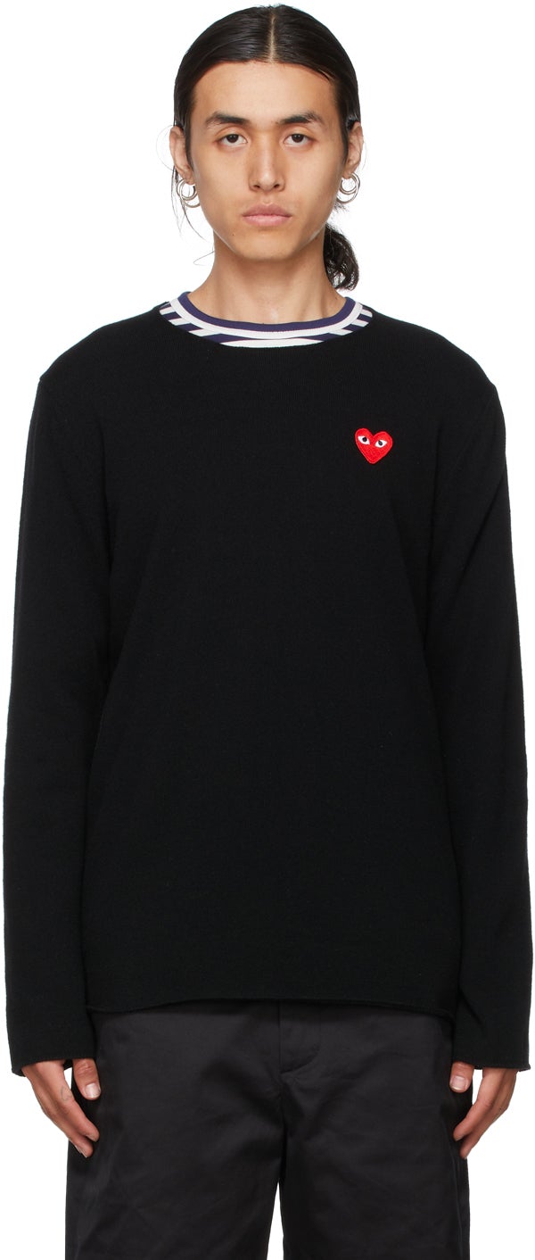Comme des Garçons Play Black Wool Heart Patch Long Sleeve T-Shirt