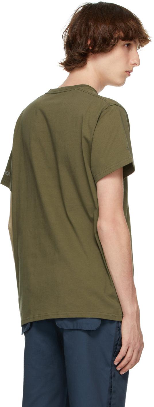 Short sleeve cotton jersey T-shirt in khaki. Rib knit crewneck collar. Logo printed in silver-tone and tonal embroidered logo at cuffs. Textile logo flag in black at side-seam. Part of the Converse x Kim Jones collaboration. Supplier color: Burnt olive 100% cotton. Brand: Converse