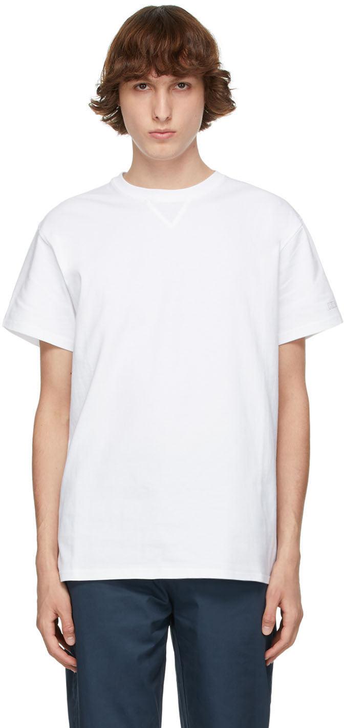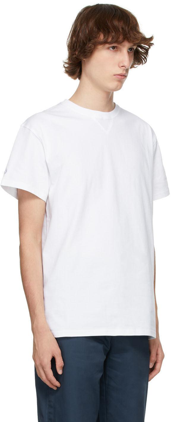 Short sleeve cotton jersey T-shirt in white. Rib knit crewneck collar. Logo printed in silver-tone and tonal embroidered logo at cuffs. Textile logo flag in black at side-seam. Part of the Converse x Kim Jones collaboration. Supplier color: White 100% cotton. Brand: Converse