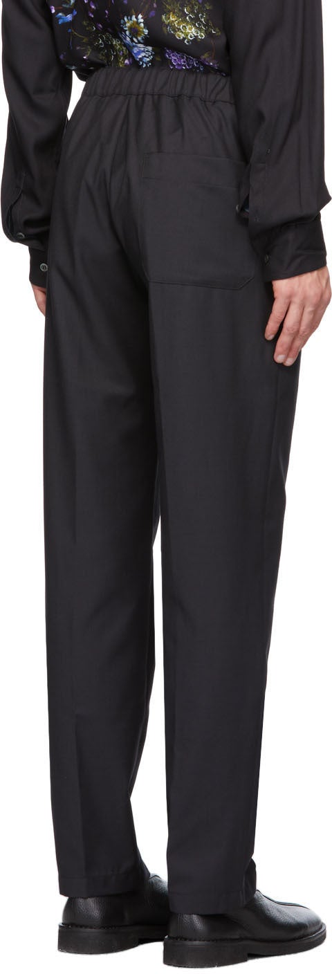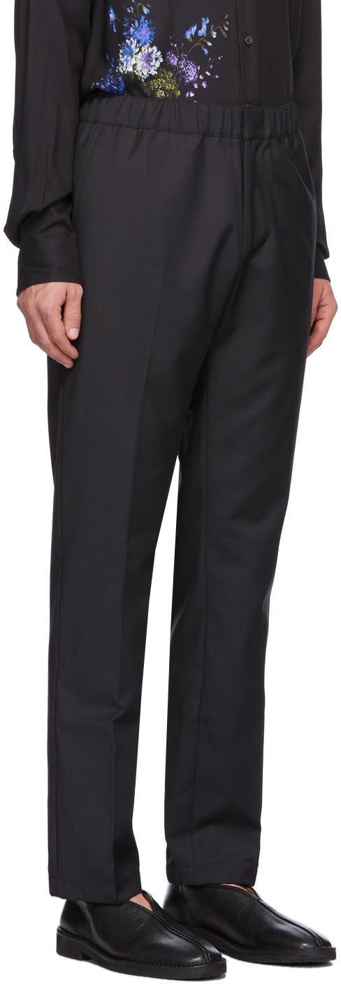 Straight-fit stretch cotton twill trousers in black. Mid-rise. Three-pocket styling. Central creases at front. Zip-fly at elasticized waistband. Supplier color: Brouillard 92% cotton, 2% elastane. Brand: Davi Paris