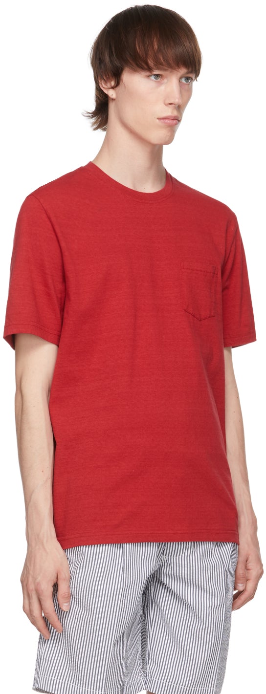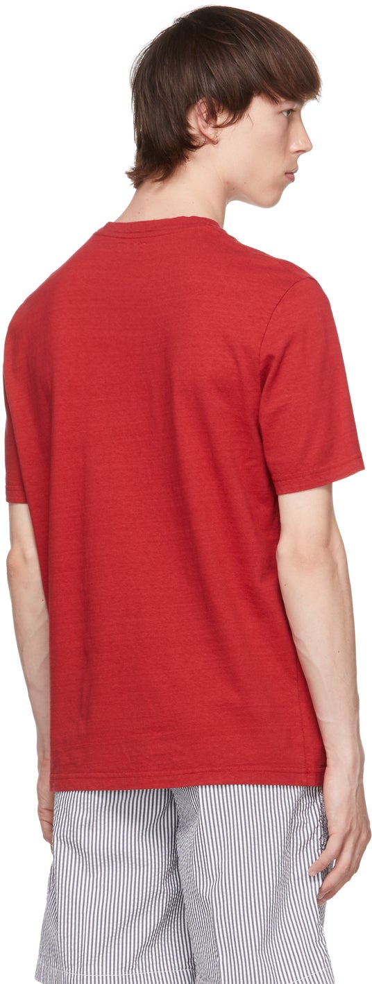 Short sleeve cotton jersey T-shirt in red. Rib knit crewneck collar. Patch pocket at chest. Embroidered logo appliqué in white and black at hem. Supplier color: Red 100% cotton. Brand: DOPPIAA