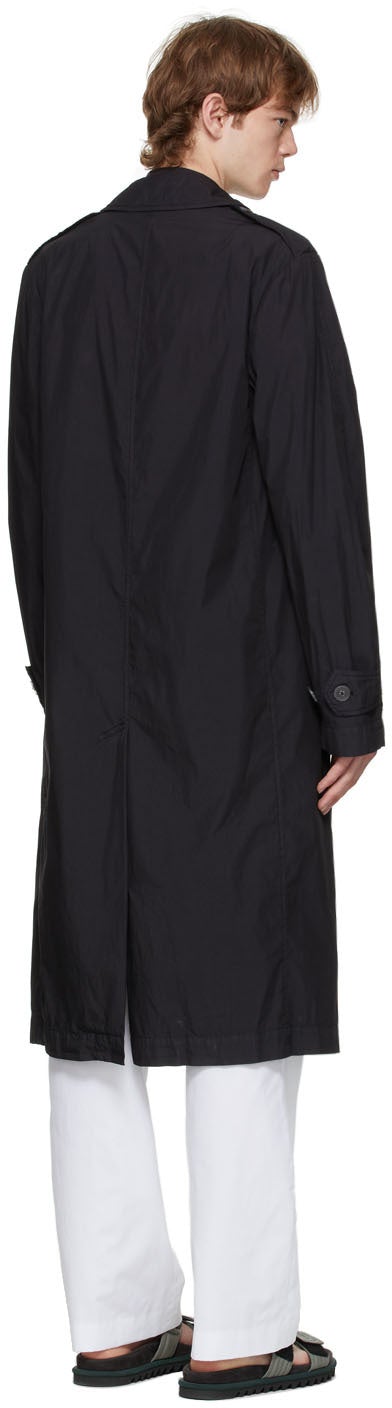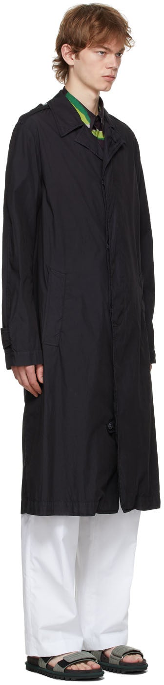 Long sleeve cotton and nylon-blend poplin coat in black. Open spread collar. Concealed button closure at front. Buttoned tab at shoulders. Welt pockets at waist. Adjustable button tab at cuffs. Unlined. Supplier color: Black 82% cotton, 18% polyamide. Brand: Dries Van Noten
