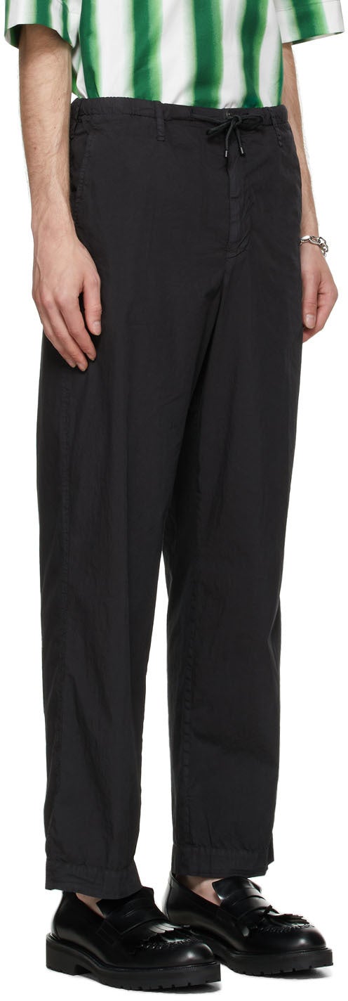 Straight-leg cotton and nylon-blend poplin trousers in black. Mid-rise. Three-pocket styling. Concealed drawstring and belt loops at waistband. Zip-fly. Supplier color: Black Body: 82% cotton, 18% polyamide. Lining: 100% cotton. Brand: Dries Van Noten
