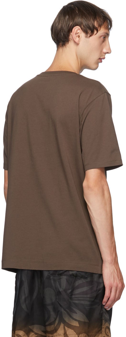Short sleeve rib knit cotton T-shirt in brown. Crewneck collar. Supplier color: Brown 100% cotton. Brand: Dries Van Noten