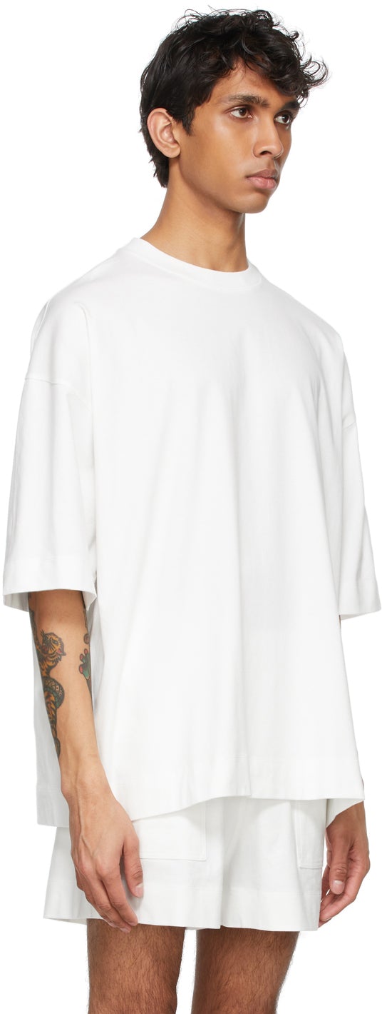 Short sleeve cotton jersey T-shirt in white. Rib knit crewneck collar. Dropped shoulders. Supplier color: Off-white 100% cotton. Brand: Dries Van Noten