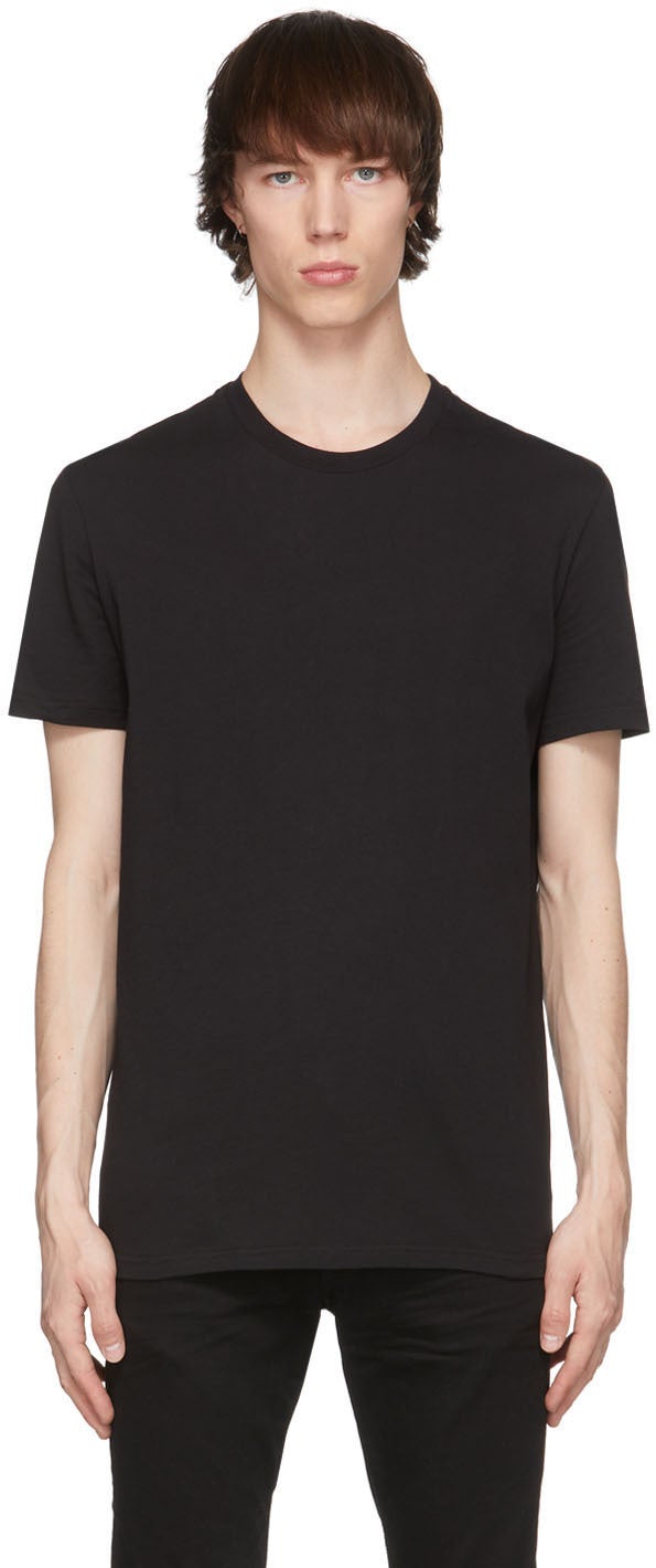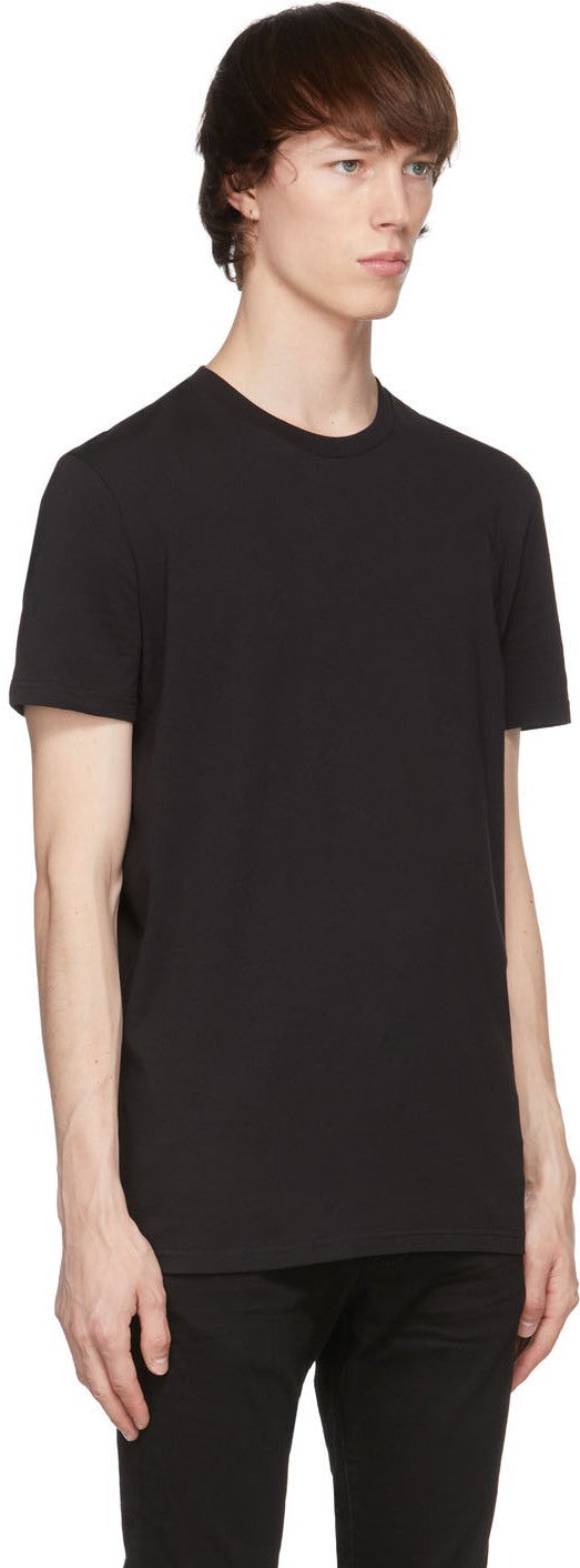 Short sleeve stretch cotton jersey T-shirt in black. Rib knit crewneck collar. Logo printed in white at cuff. Supplier color: Black 95% cotton, 5% elastane. Brand: Dsquared2