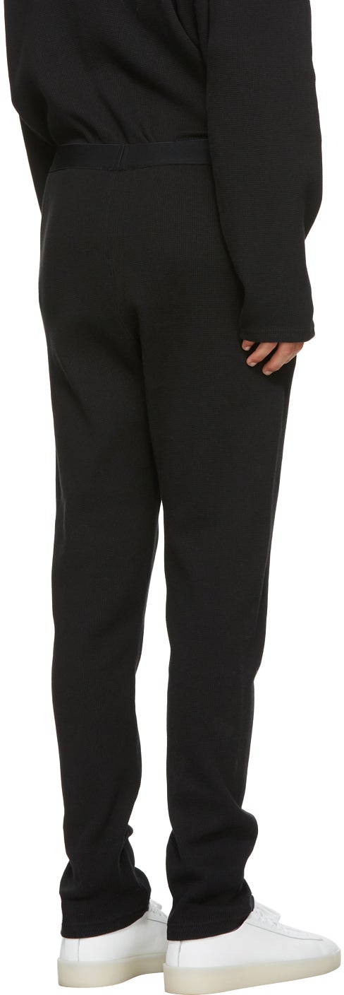 Slim-fit waffle knit cotton lounge pants in black. Mid-rise. Two-pocket styling. Jacquard knit logo in grey at elasticized waistband. Please note that this item may not be shipped within the EU. Supplier color: Black 100% cotton. Brand: Essentials