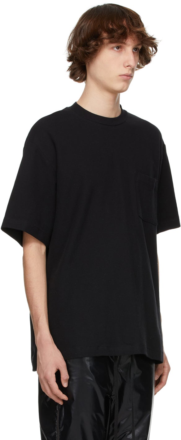 Short sleeve cotton piqué T-shirt in black. Crewneck collar. Patch pocket at chest. Tonal leather logo patch at back collar. Supplier color: Black 100% cotton. Brand: Fear of God