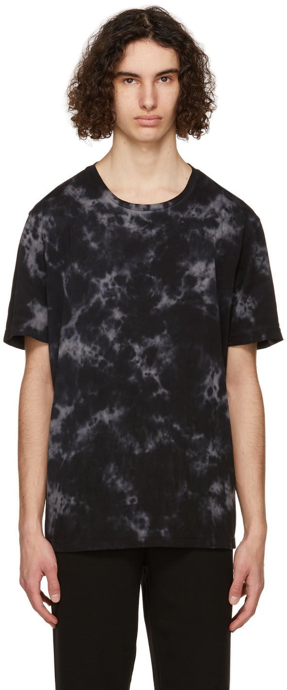 Short sleeve organic pima cotton jersey T-shirt tie-dyed in tones of black, grey, and navy. Rib knit crewneck collar. Each item is unique. Please note that coloration may vary. Supplier color: Noir 100% pima organic cotton. Brand: Frame