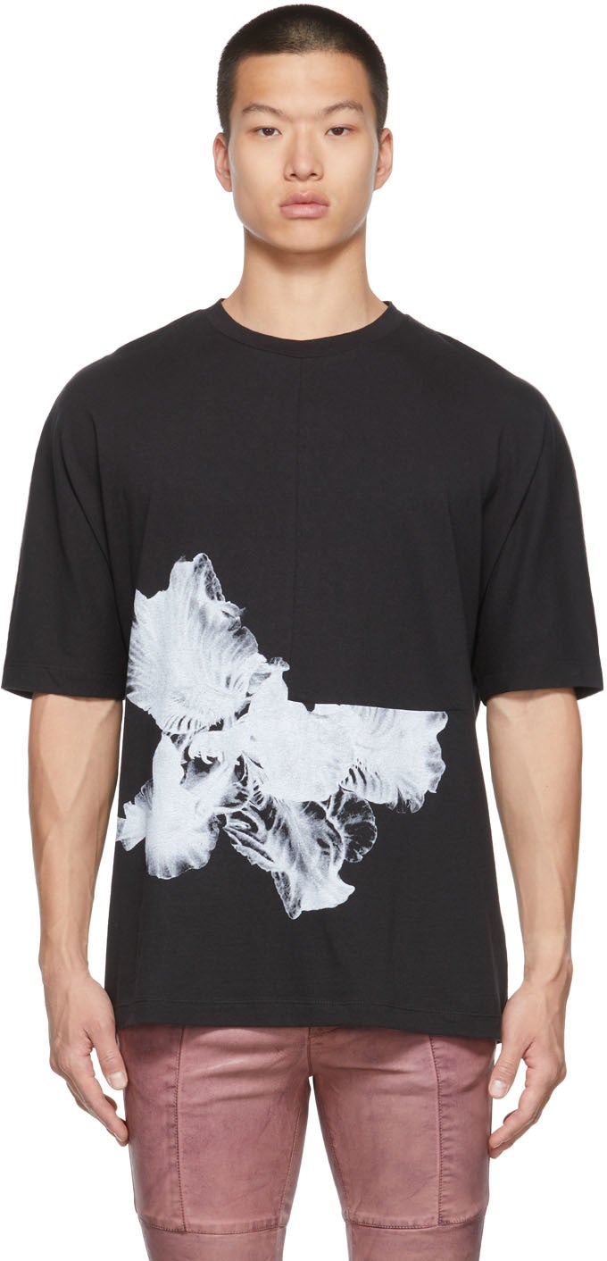 Short sleeve recycled cotton jersey T-shirt in black featuring graphic print in white. Supplier color: Tar 100% recycled cotton. Brand: FREI-MUT