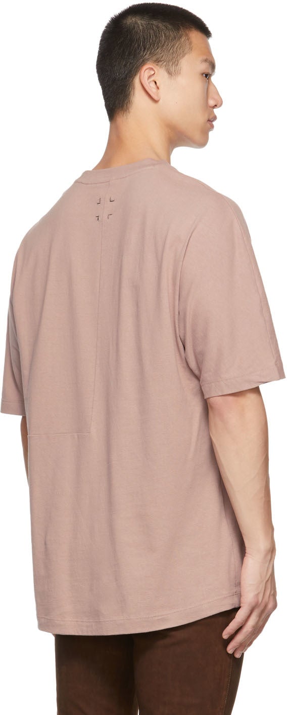 Short sleeve recycled cotton jersey T-shirt in pink featuring graphic print in black. Rib knit crewneck collar. Supplier color: Hymn 100% recycled cotton. Brand: FREI-MUT