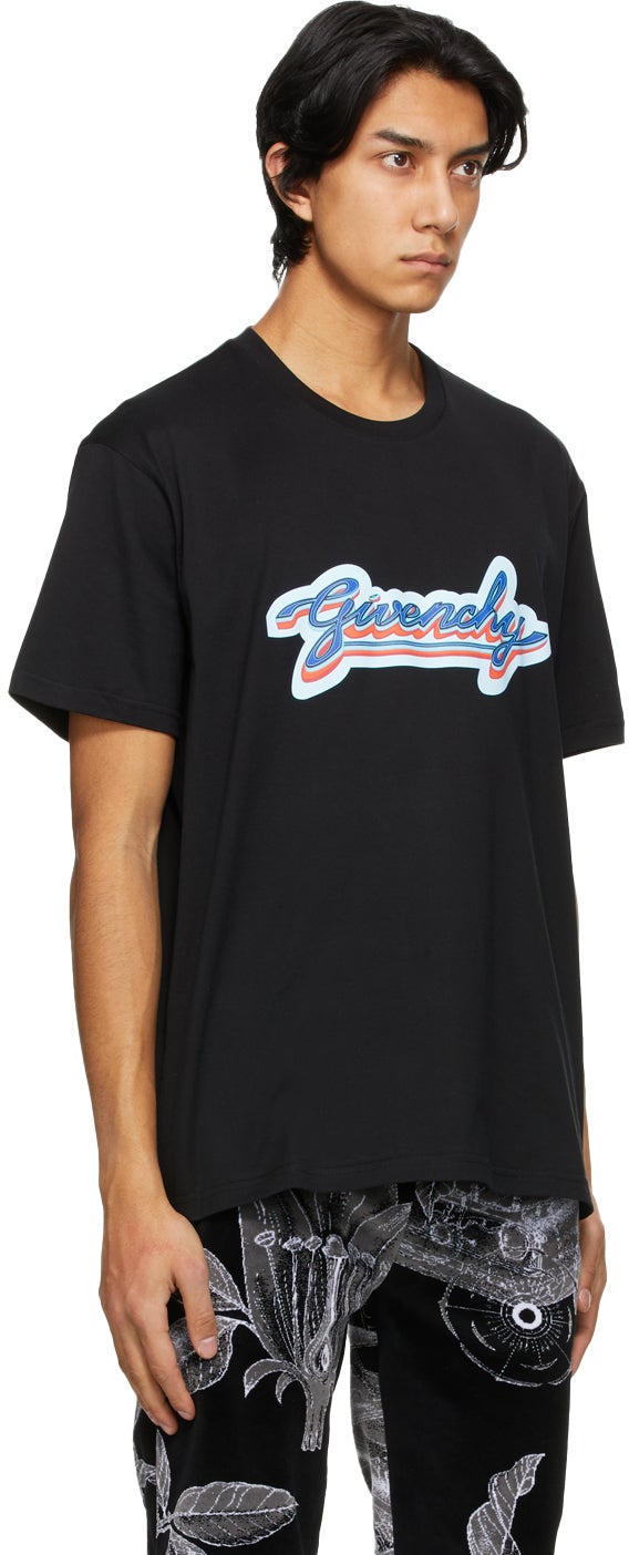 Short sleeve cotton jersey T-shirt in black. Rib knit crewneck collar. Multicolor logo printed at chest. Supplier color: Black 100% cotton. Brand: Givenchy