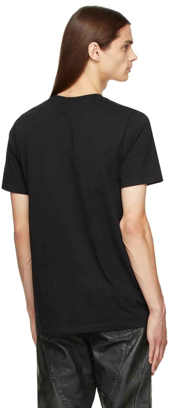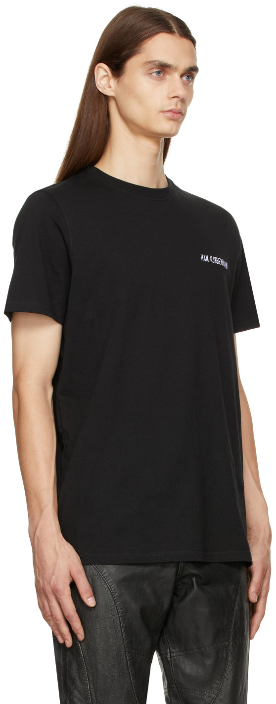 Short sleeve cotton jersey T-shirt in black. Rib knit crewneck collar. Logo embroidered in white at chest. Textile logo flag in red and white at side-seam. Supplier color: Black 100% cotton. Brand: Han Kjobenhavn