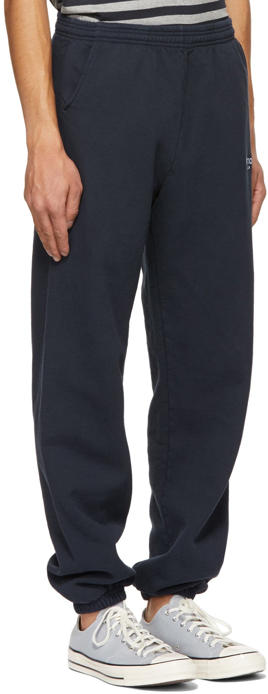 Relaxed-fit cotton fleece lounge pants in navy. Mid-rise. Three-pocket styling. Concealed drawstring at elasticized waistband. Logo embroidered in white a front leg. Elasticized cuffs. Supplier color: Navy 100% cotton. Brand: Harmony