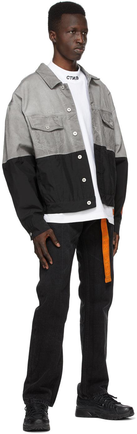 Short sleeve organic cotton jersey T-shirt in white. Logo embroidered in black at rib knit mock neck collar and cuff. Textile logo patch in orange at hem. Tonal textile logo patch at back hem. Supplier color: White/Black Body: 100% organic cotton. Trim: 100% polyester. Brand: Heron Preston