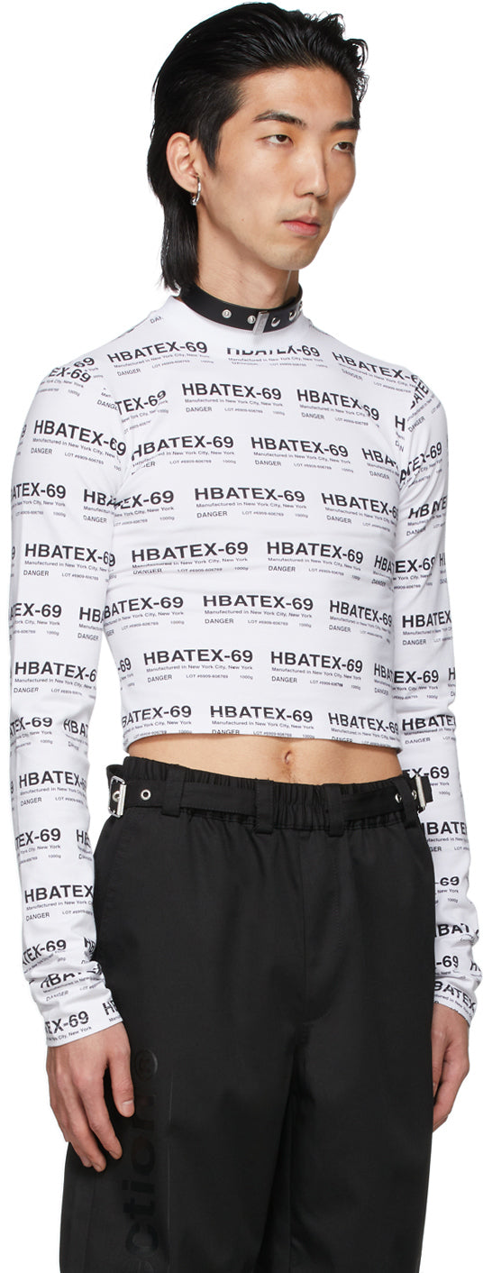 Hood by Air White All Over Print Crop Long Sleeve T-Shirt