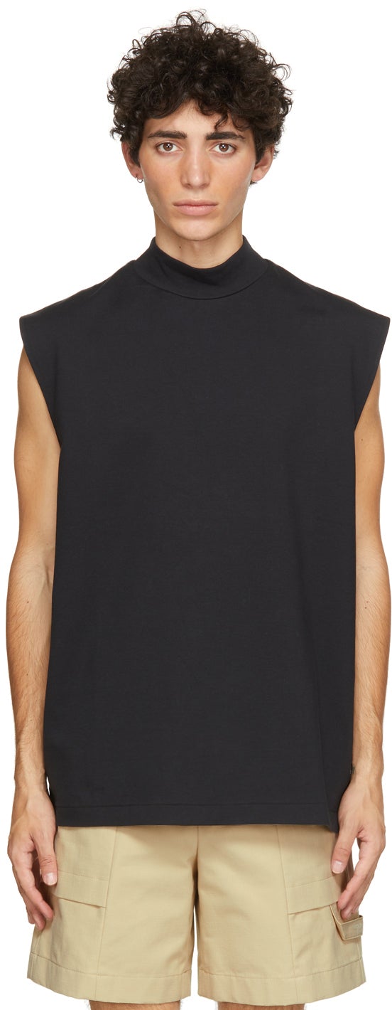 Sleeveless stretch cotton and nylon-blend tank top in black. Mock neck collar. Supplier color: Black 64% cotton, 34% polyamide, 2% elastane. Brand: HOPE