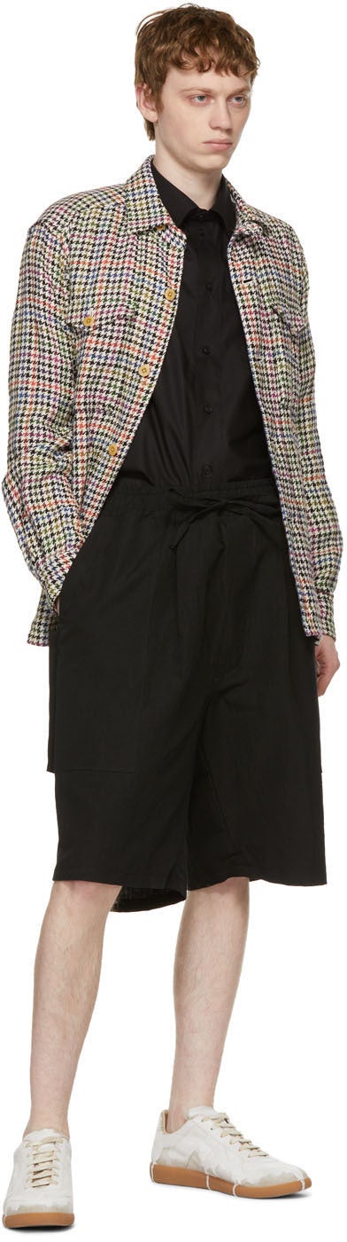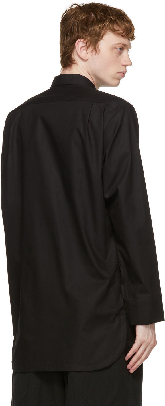 Long sleeve organic cotton poplin shirt in black. Spread collar. Button closure at front. Patch pocket at chest. Tuck pleat at waist. Box pleat at back. Shirttail hem. Tonal hardware. Supplier color: Black 100% organic cotton. Brand: House of the Very Islands
