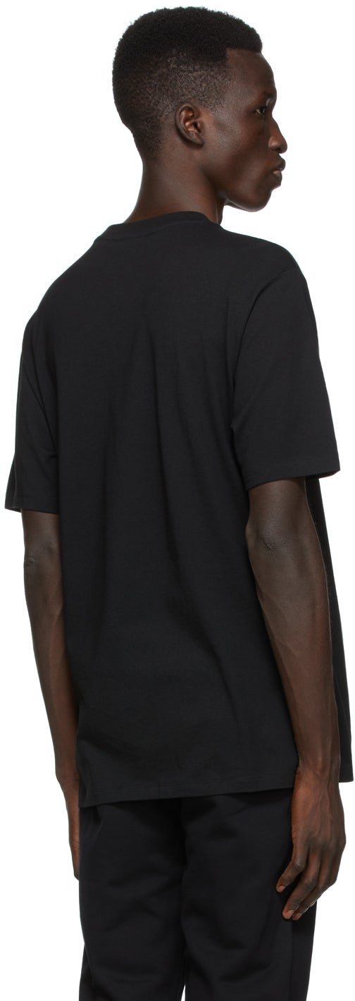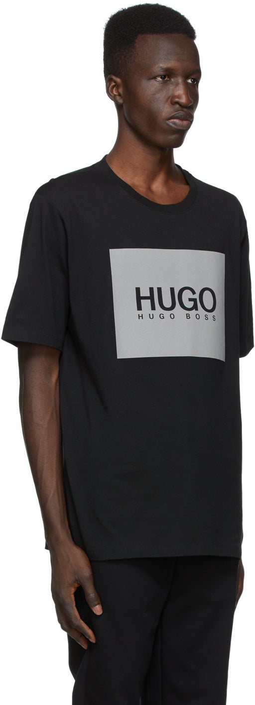 Short sleeve cotton jersey T-shirt in black. Rib knit crewneck collar. Logo printed in white at front. Supplier color: Black 100% cotton. Brand: Hugo