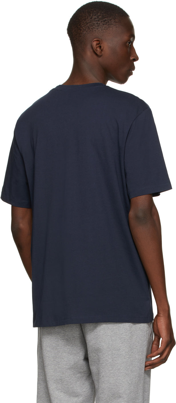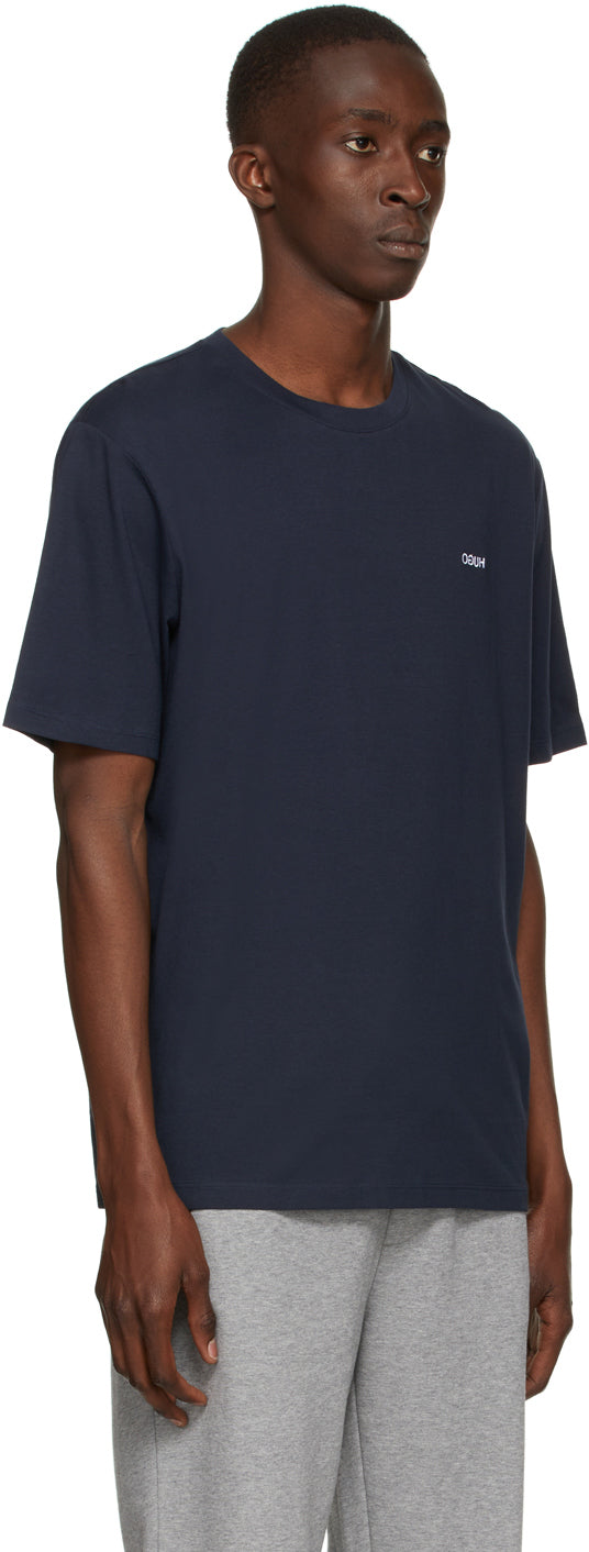 Short sleeve cotton jersey T-shirt in navy. Rib knit crewneck collar. Logo bonded in white at chest. Supplier color: Navy 100% cotton. Brand: Hugo