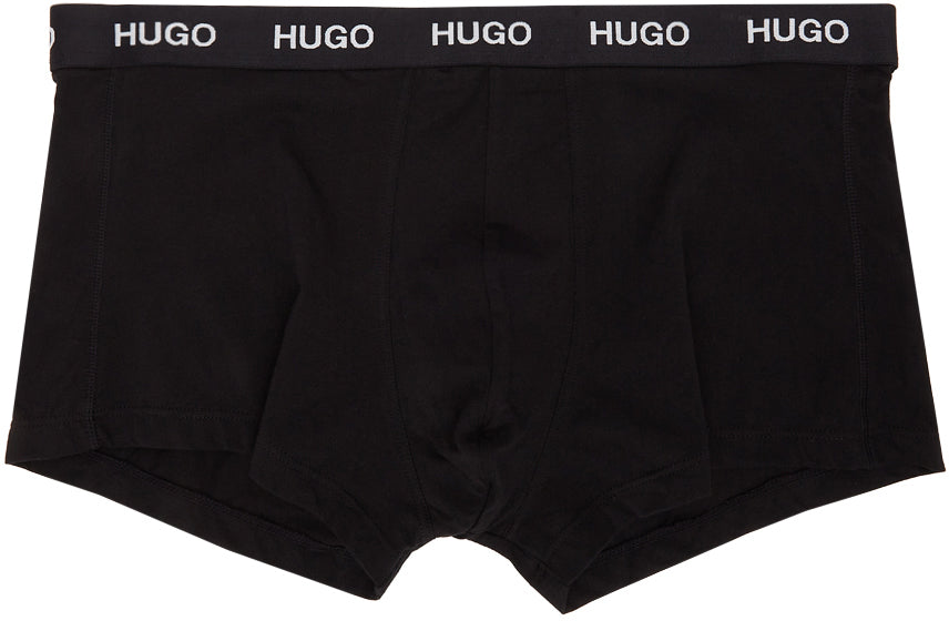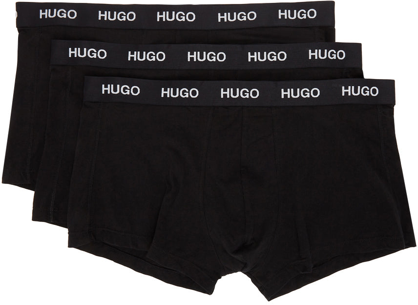 Hugo Three-Pack Black Logo Waistband Trunk Briefs