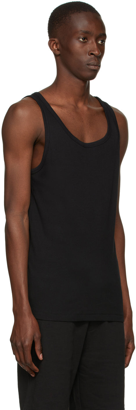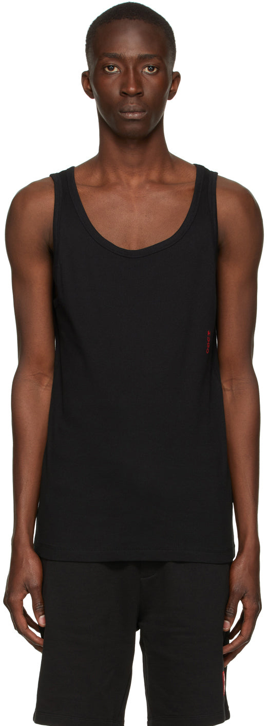 Pack of two sleeveless stretch cotton jersey tank tops in black. Rib knit crewneck collar armscyes. Logo embroidered in red at chest. Supplier color: Black 92% cotton, 7% elastane. Brand: Hugo