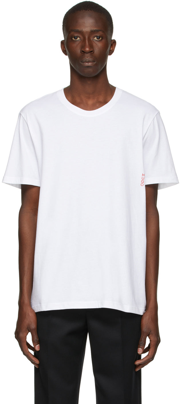 Pack of two short sleeve stretch cotton jersey T-shirts in white. Crewneck collar. Logo embroidered in red at chest. Supplier color: White 100% cotton. Brand: Hugo