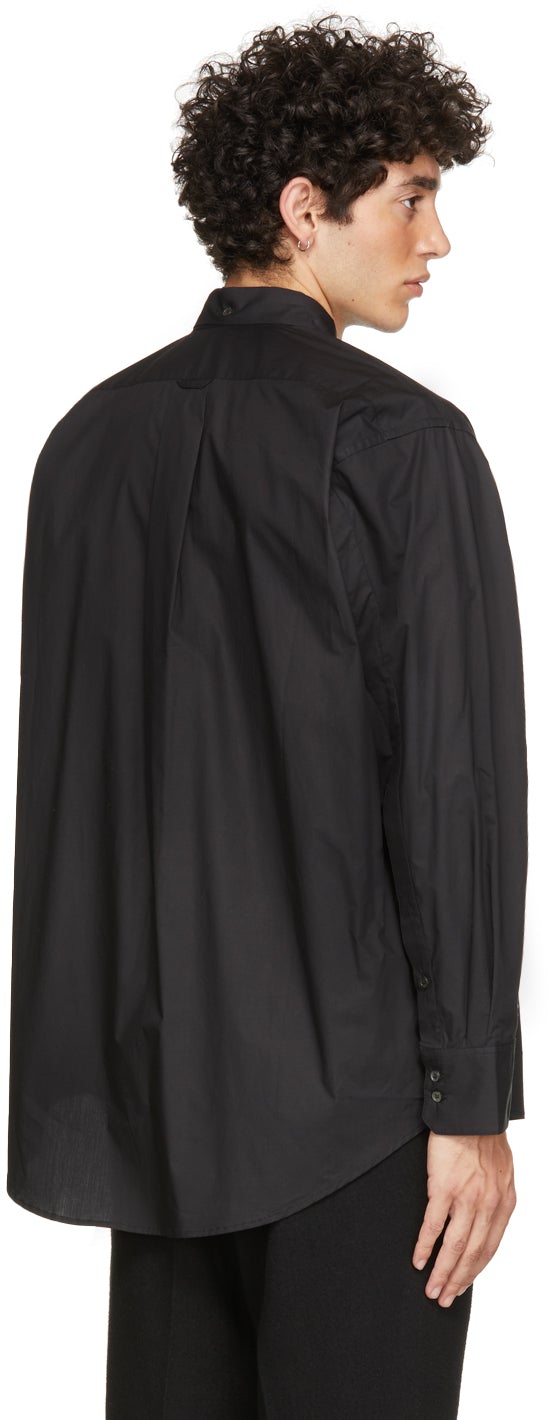 Long sleeve cotton poplin shirt in black. Spread collar. Button closure at front. Patch pocket and graphic printed in white at front. Two-button barrel cuffs. Box pleat and locker loop at back. Shirttail hem. Supplier color: Black 100% cotton. Brand: Isabel Benenato