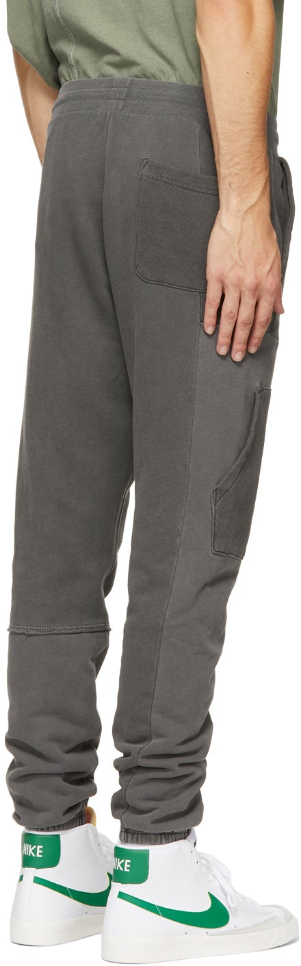 Tapered paneled French terry lounge pants in tones of black. Mid-rise. Three-pocket styling. Drawstring at waistband. Patch pocket at outseam. Elasticized cuffs. Silver-tone hardware. Part of the Reconstructed collection. Supplier color: Washed black Body: 99% cotton, 1% polyester. Trim 1: 95% cotton, 5% polyester. Trim 2: 100% cotton. Trim 3: 97% cotton, 3% polyurethane. Brand: John Elliott